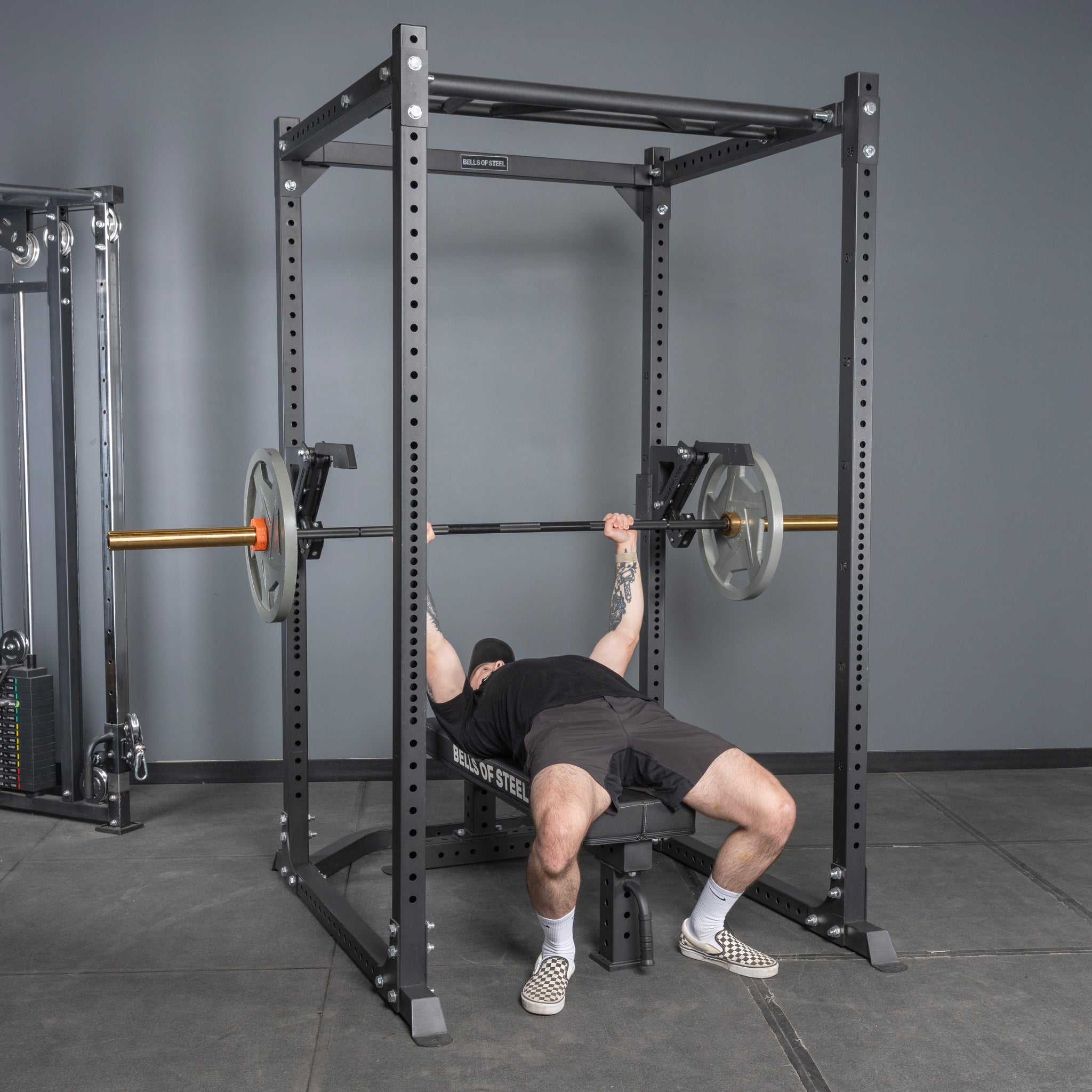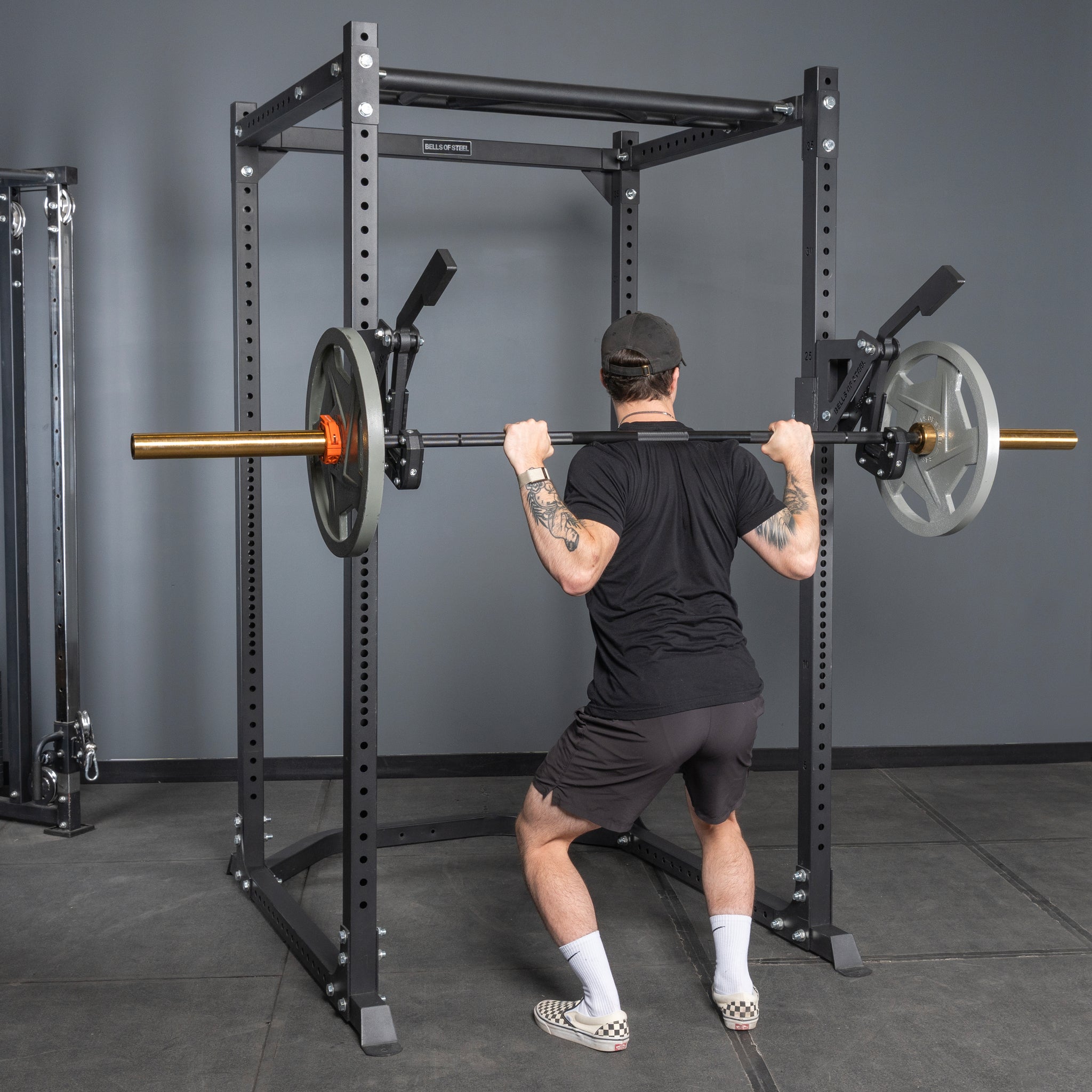 The upgraded cantilever-style swing-back design improves bar clearance for squats and presses, creating more room to squat deep and lift heavy.