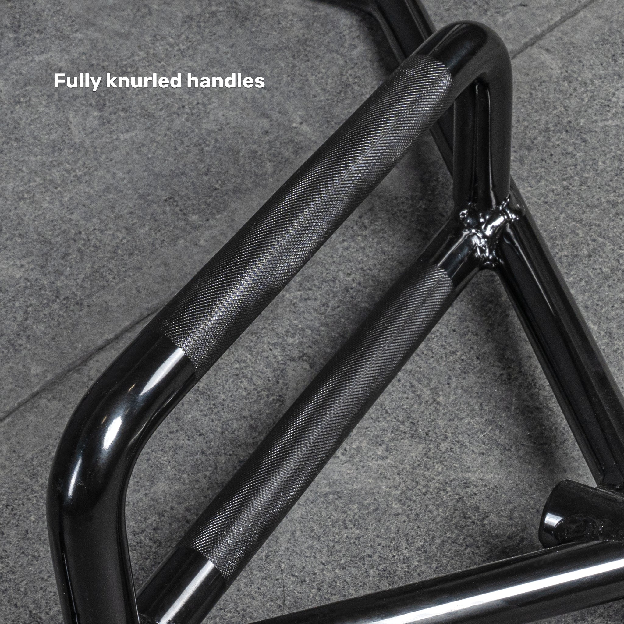 Fully knurled handles provide a confident, secure grip without tearing your hands apart — ideal for volume work and heavy pulls.