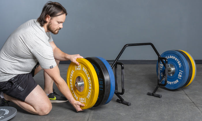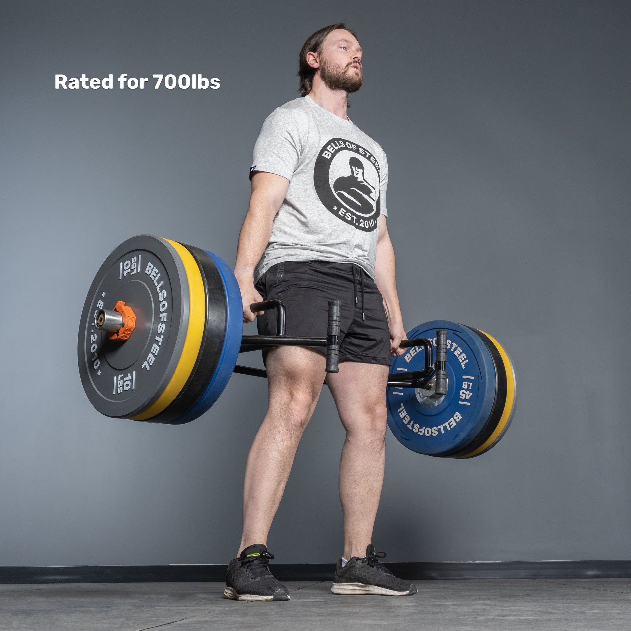 To keep the bar more compact for both storage and shipping, the sleeves are a little shorter than full-length barbell sleeves; however, the plate block has been made extra thin, allowing for a full seven B.o.S.45lb machined plates to be loaded on each side. Fit even more calibrated plates with a maximum weight of 700lbs.