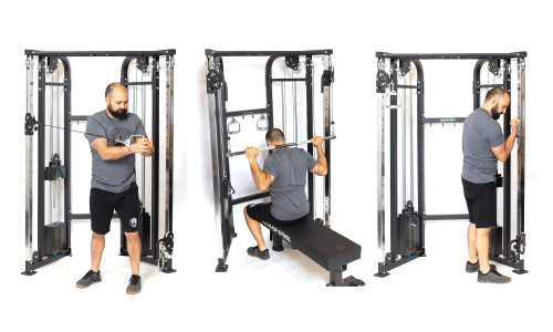 The functional trainer unlocks sports crosstraining, functional movements, rehab, and bodybuilding! Featuring dual cables with 16 different heights and two included handles, plus many more cable attachments to choose from, you can fully customize your training experience.