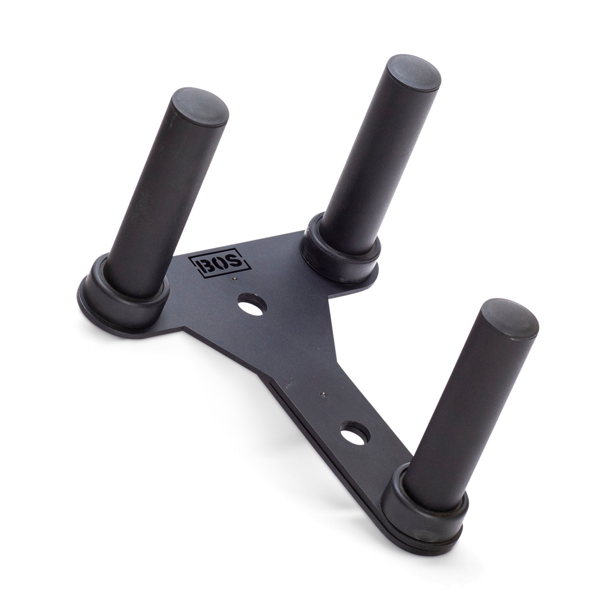 Triple pegs for additional storage to keep your fractional plates organized and ready for your next 1lb PR. Trust us — it counts! You can throw resistance bands and other accessories on there, too, if you want; we aren't checking.