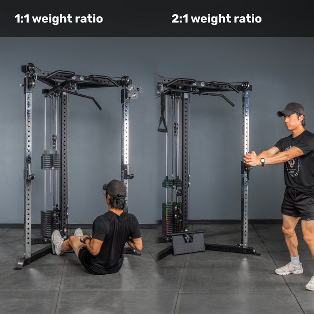 Side pulleys run a smooth 2:1 ratio for dialed-in isolation work, while the 1:1 center pulleys hit hard for heavy rows and pulldowns that make your lats sizzle. Switch from precision to strength, seamlessly.
