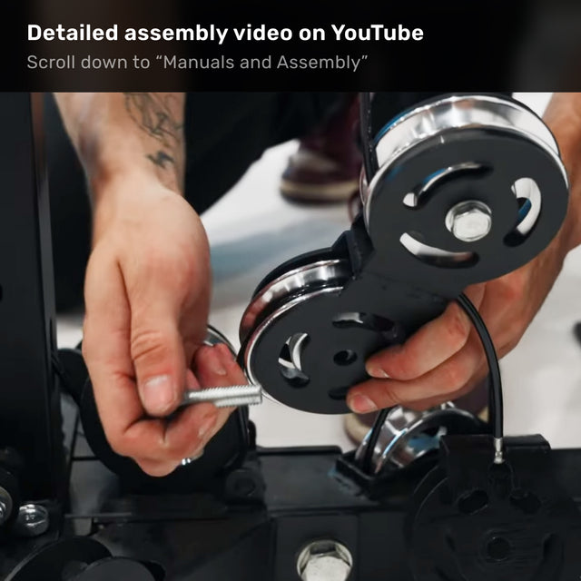 - Premium pulleys and cables eliminate wobble and grinding