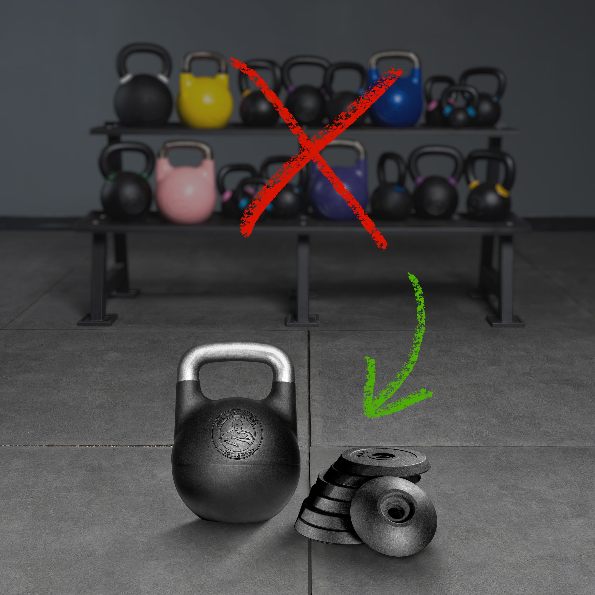 Built with a steel shell, iron plates, 0.5 kg micro-loading, true competition shape and size, and up to 41 weight intervals in one bell, it delivers the exact performance of fixed kettlebells in a modular, space-saving format.