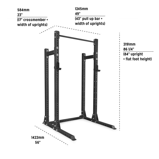 Its 1,000-pound capacity outlasts heavy squats, handles big bench presses and withstands chin-ups with 8 kids hanging onto your waist. The uprights measure true 3" x 3" which is EXACTLY 76.2mm x 76.2mm, instead of the typical 75mm x 75mm uprights of other brands' imported racks.