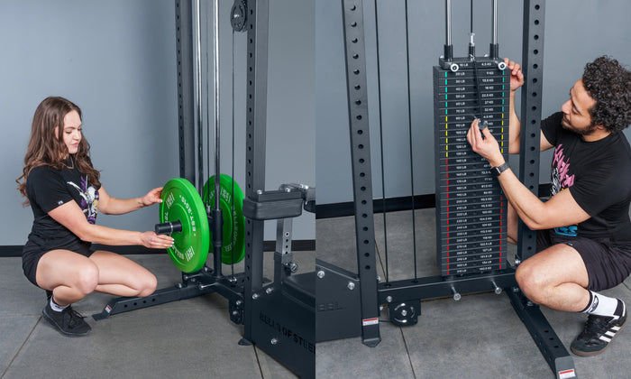 It depends on your training style and setup. The plate-loaded version uses Olympic plates (2" / 50 mm) and is a great choice if you already own plates and want a more budget-friendly option. The weight stack version allows faster weight changes using a selector pin, which is convenient for drop sets, supersets, or shared gym spaces. You can also start with the plate-loaded machine and upgrade to a weight stack later with a compatible upgrade kit.