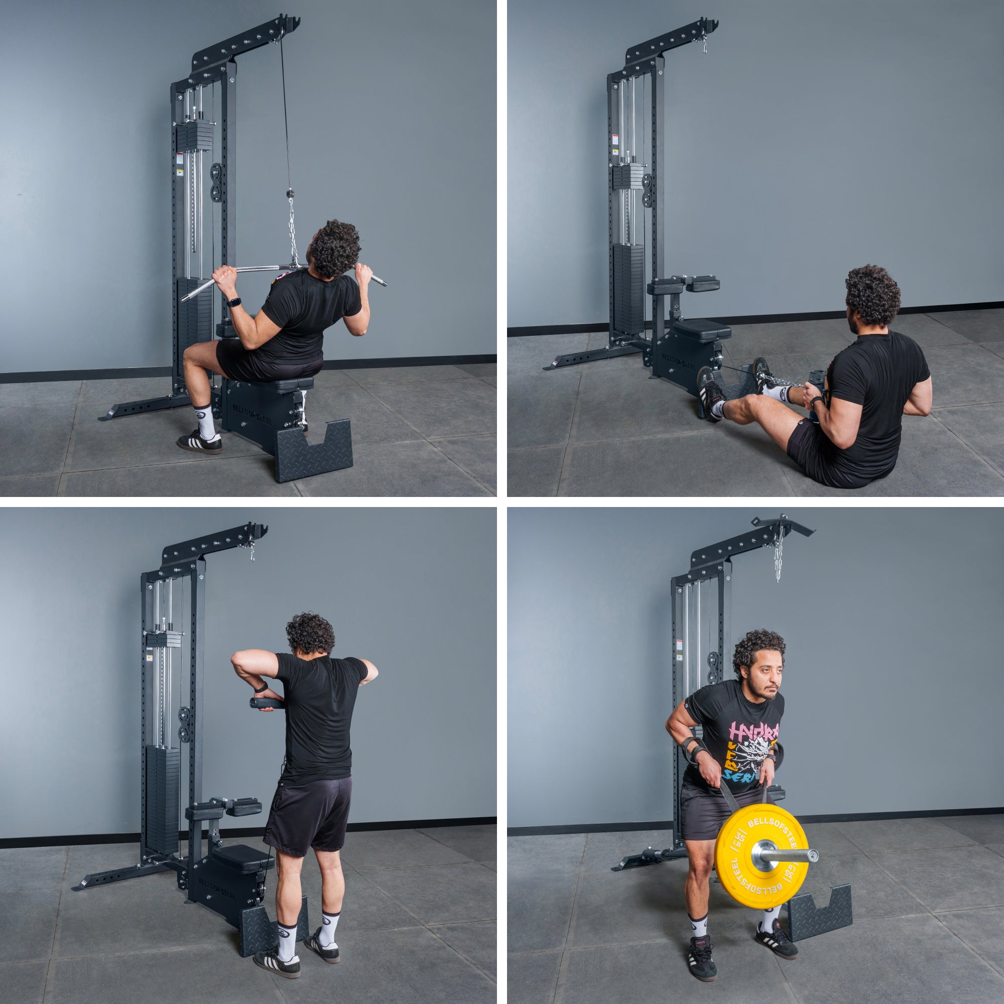 • Train every angle your back needs → Hit vertical pulls (lats, width) and horizontal pulls (thickness, mid-back) without moving between machines or waiting for equipment to free up.