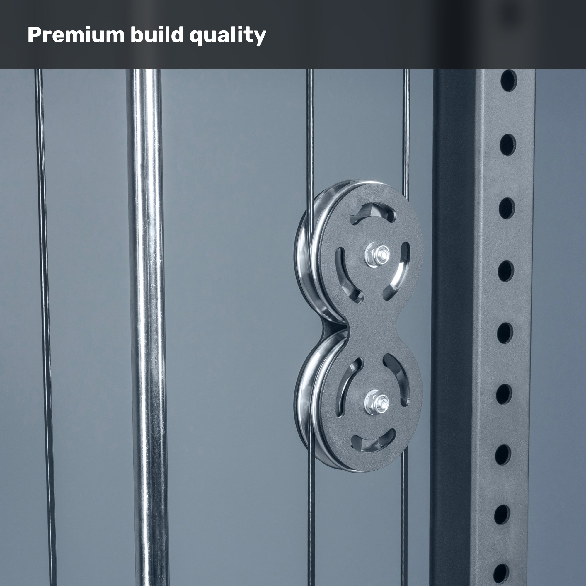 • Built for daily abuse → Heavy-gauge steel frame, sealed bearings, and aircraft cable rated for thousands of pounds mean this won't develop that sketchy cable wobble after a year of hard pulls.