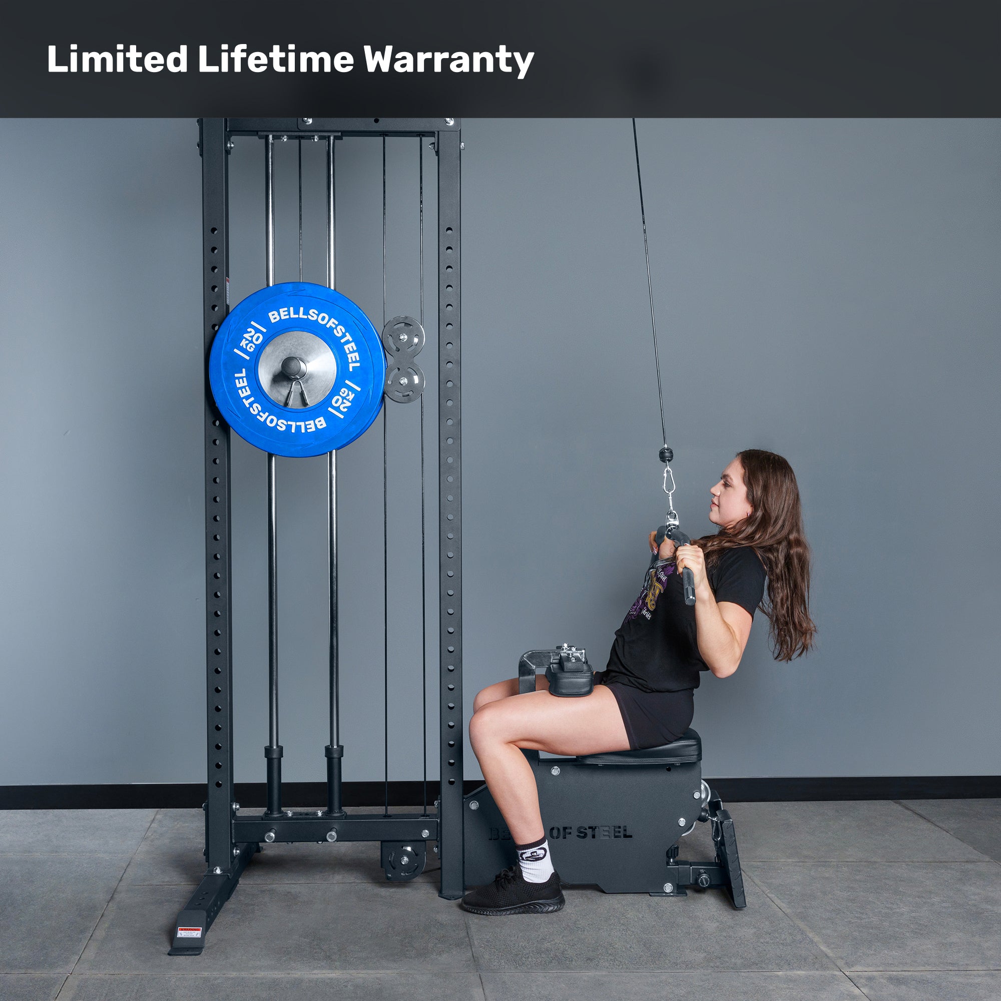 The Lat Pulldown Low Row Machine is backed by Bells of Steel’s Limited Lifetime warranty for the frame, and a 90 day warranty on the cables and pulleys. Shipping rates and delivery timelines are available at checkout or via the Shipping Policy page.
